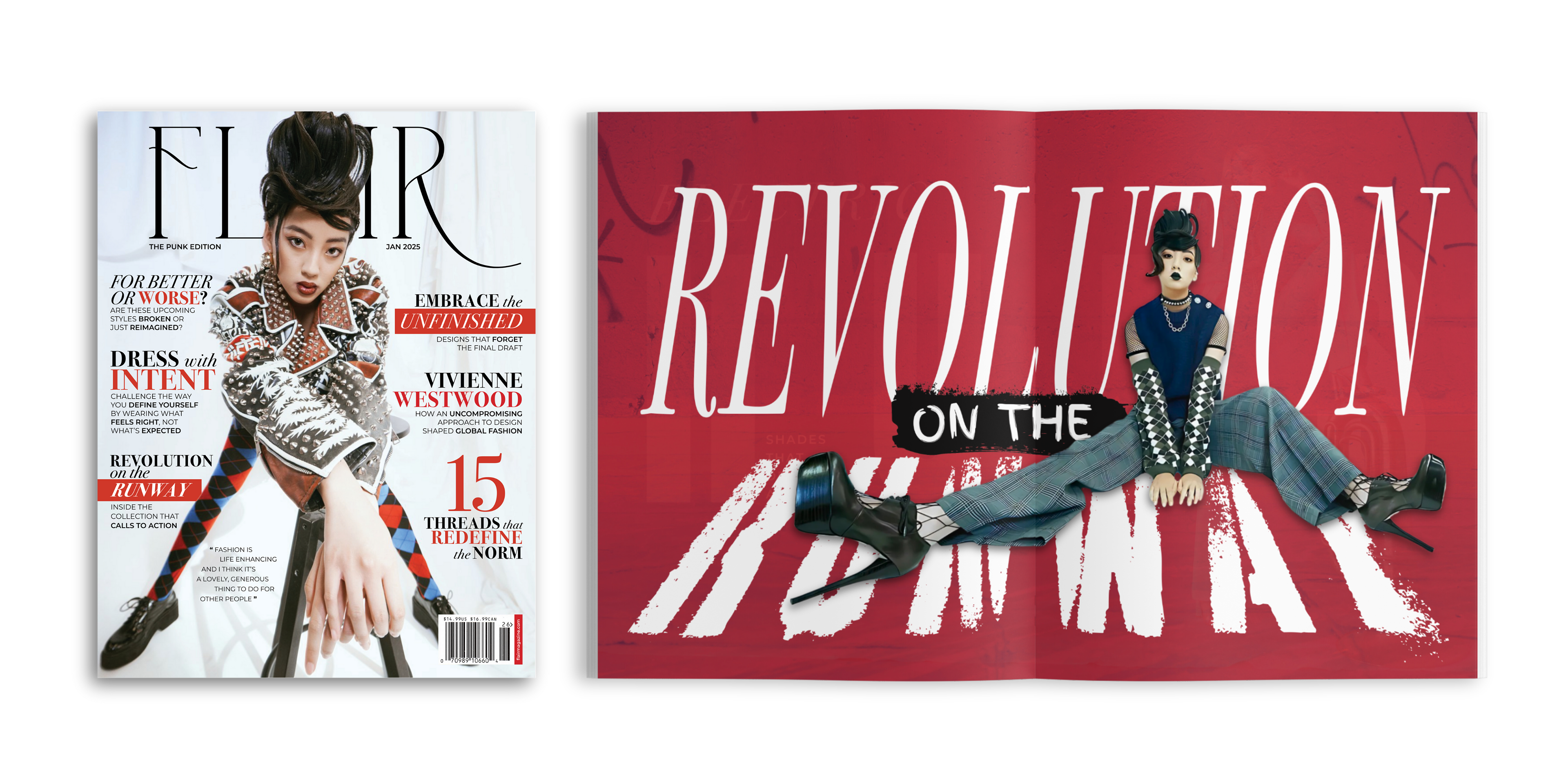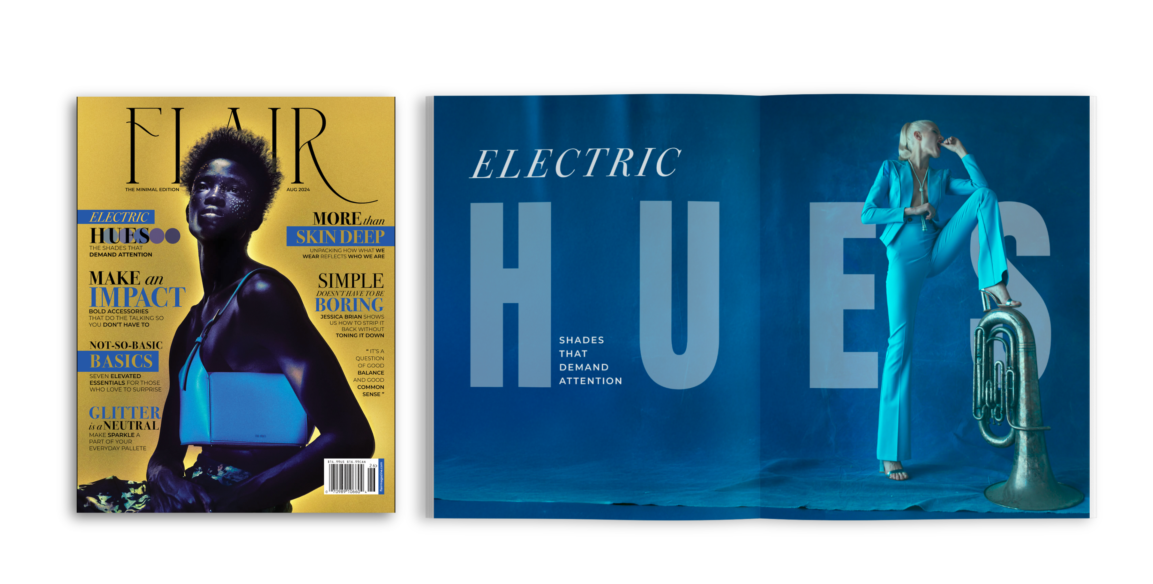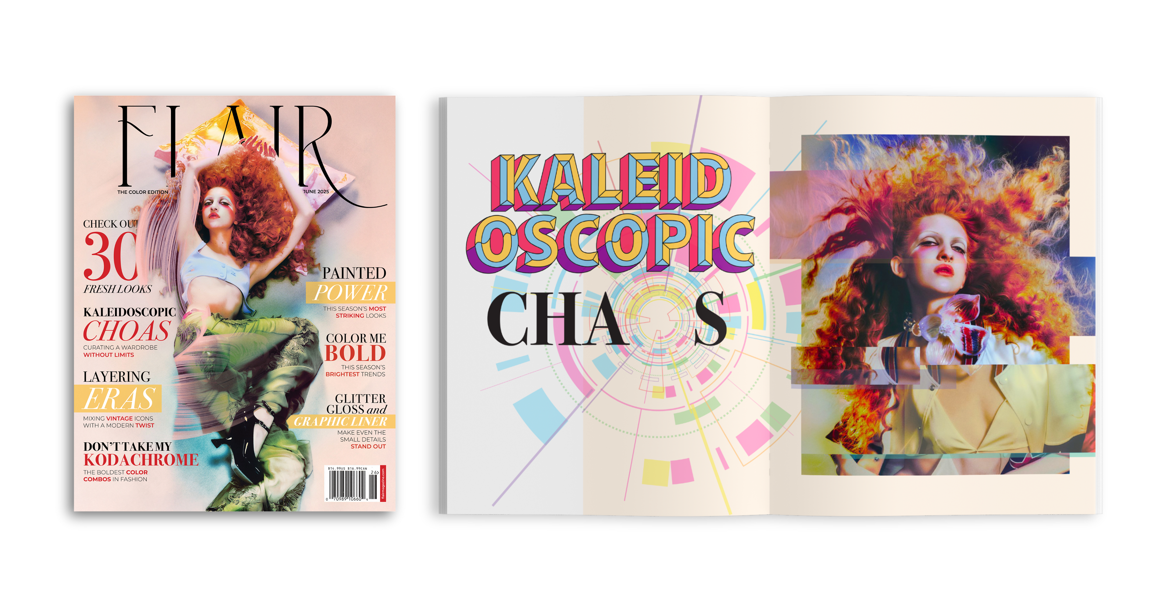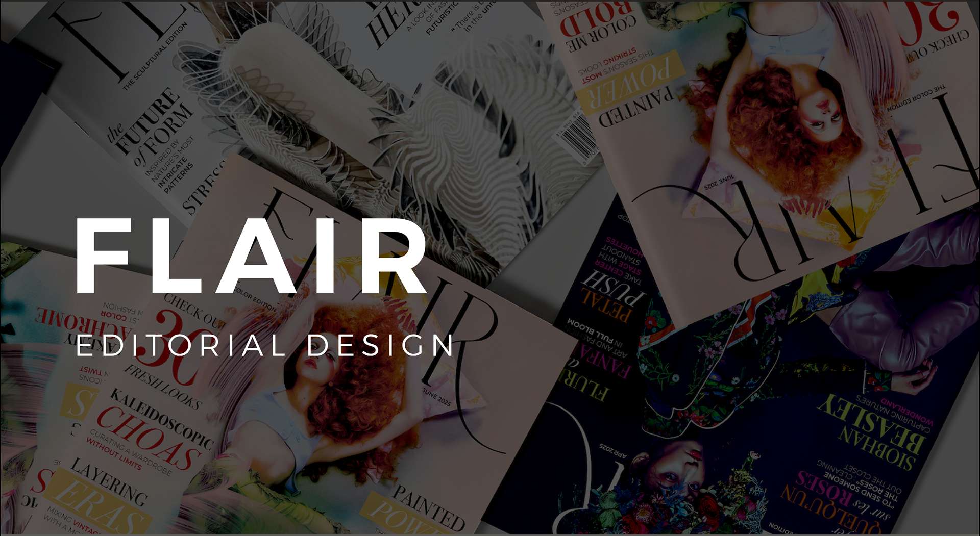 A rebrand and revival concept for Flair, an avant-garde fashion and beauty magazine originally launched in the 1950s. The idea was to take the spirit of the original and reimagine it for a modern audience with a focus on eccentric style, expressive editorial, and visually rich storytelling.