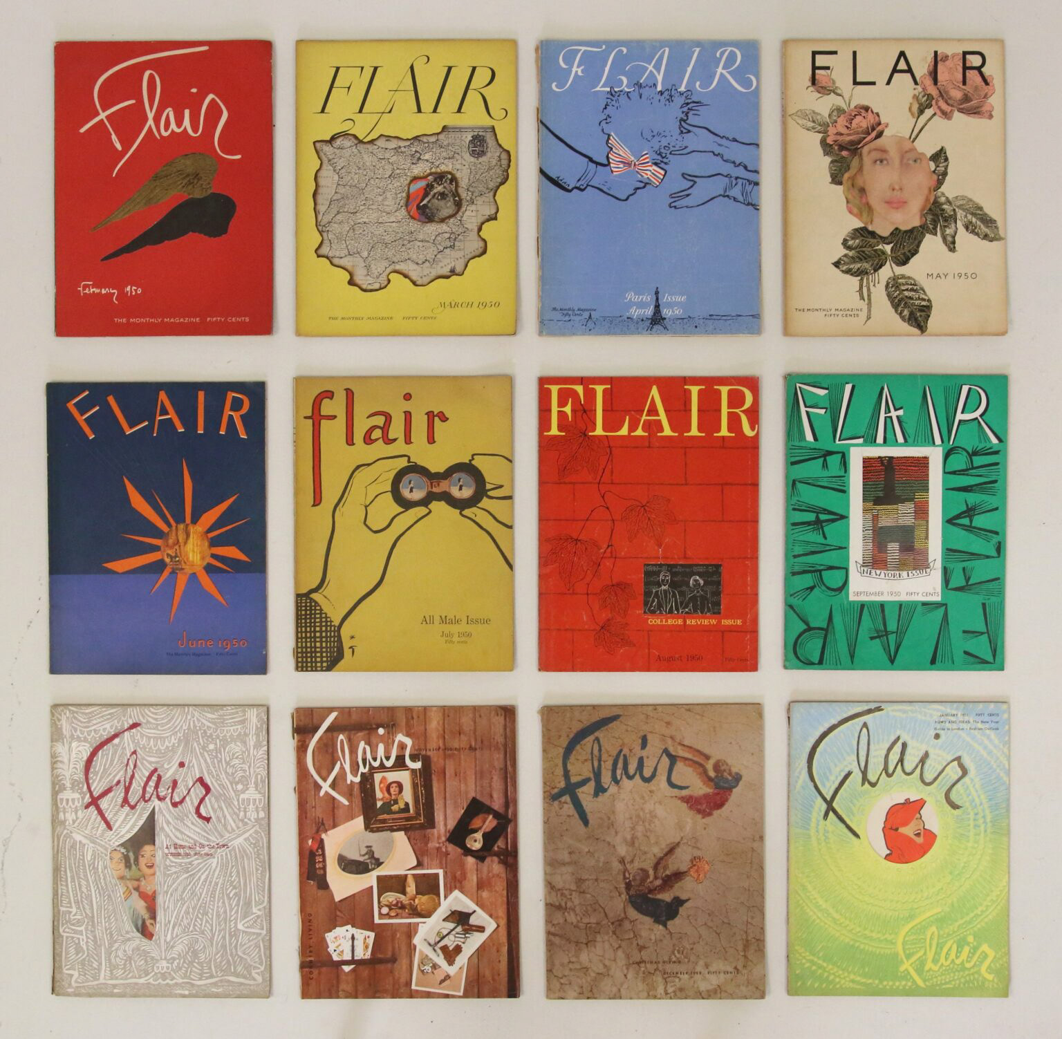 Flair was created in the 1950s by Fleur Cowles as a high-fashion magazine that pushed the boundaries of editorial design. Its high production costs and niche appeal meant it only lasted a year but despite its short life, Flair left a legacy of daring creativity.